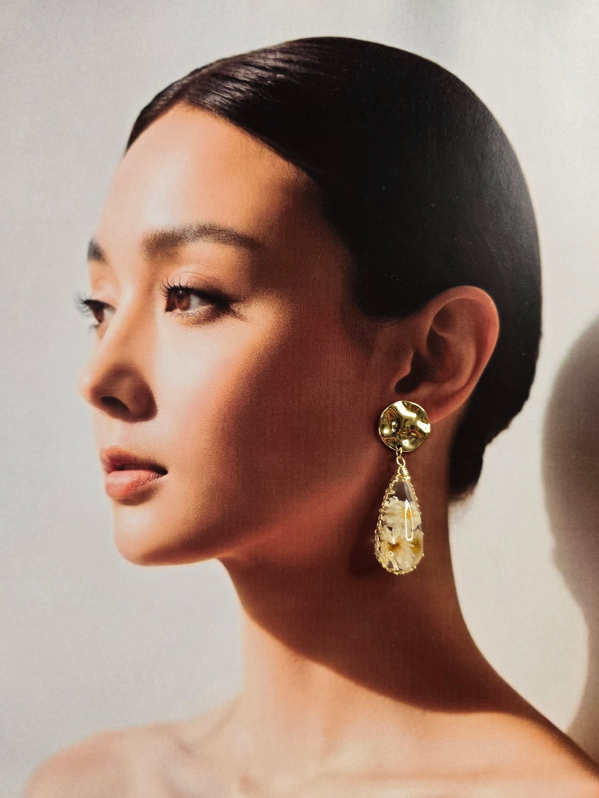 PENDIENTES FLOR ENCAPSULADA BLANCA